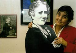 Nuestra presidenta, Blanca Estrella Ruiz Ungo, posa con una foto de Clara Campoamor. / IÑAKI ANDRÉS